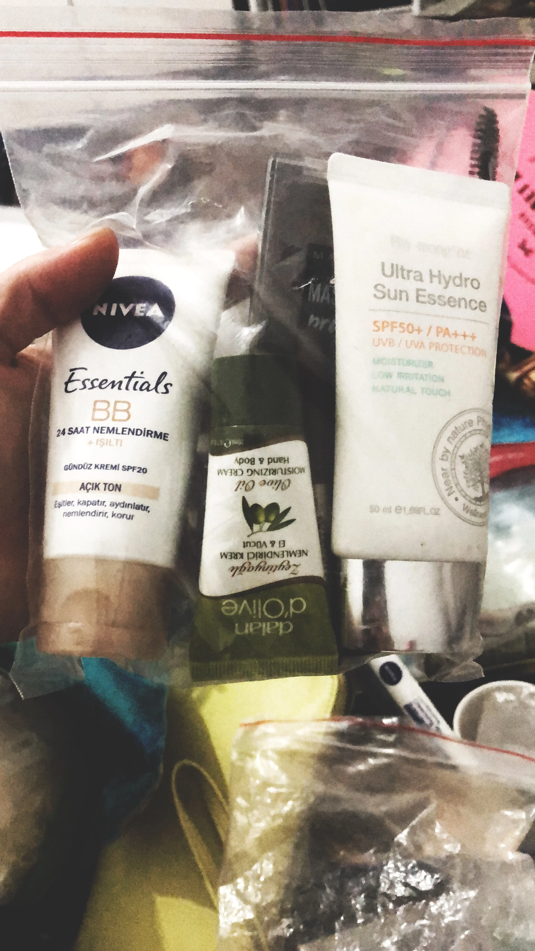 Your skincare, sunscreen, toiletries (travel-sized until you get local replacements), hair dryer, and towels.